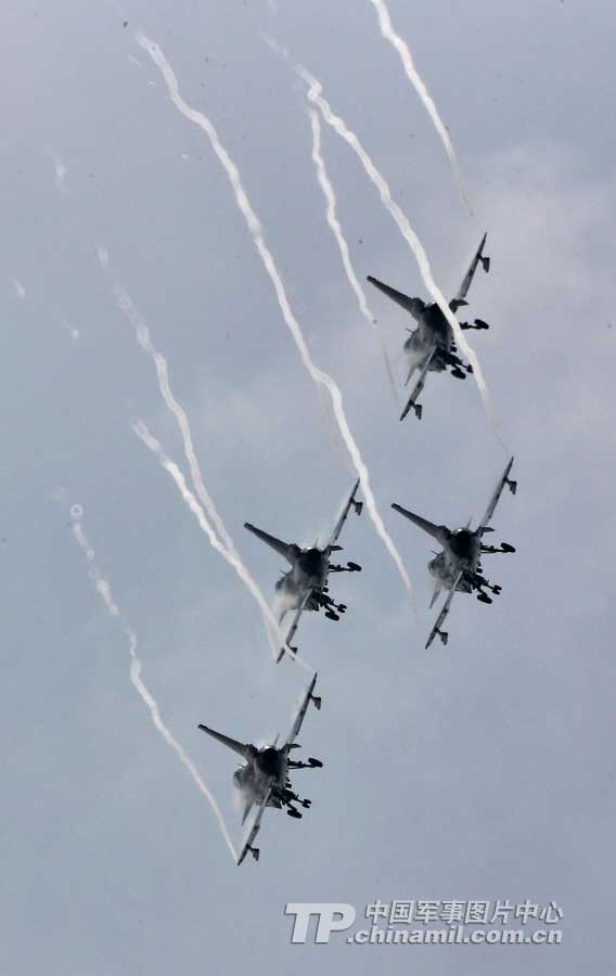 4机斜斤斗。解放军报记者 乔天富 摄