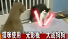 实拍猫咪持"激光剑"大战狗狗