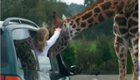 野生长颈鹿钻车窗向路人讨食